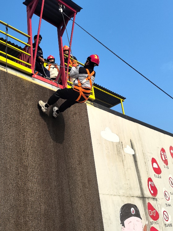 在团体项目中大家分工协作、相互配合,通过现场线索,集体完成安全隐患排查,利用所学安全知识脱离困境,体现了团队协作精神;模拟高层逃生学习不同消防结绳方法,体验缓降过程。